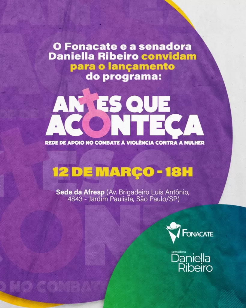 Tendo em vista as atuais políticas de enfrentamento a violência contra a mulher, como Pacto Nacional Brasil contra o Feminicídio, o Fórum das Carreiras de Estado (Fonacate) vai assinar uma parceria para apoiar o programa Antes que Aconteça.